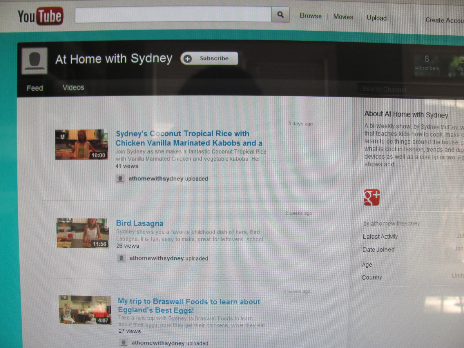 Check out my You Tube Channel and my cool cooking tips and shows July 20, 2012 By sydneymccoy in Uncategorized http://www.youtube.com/user/athomewithsydney?feature=results_main Share this: Click to share on X (Opens in new window) X Click to share on Facebook (Opens in new window) Facebook Like Loading... Related